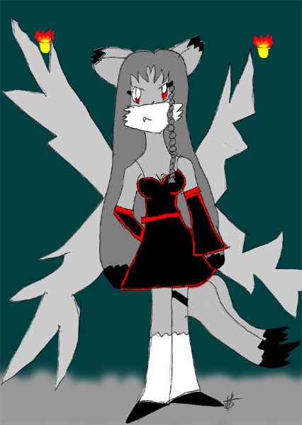 Faeriemon grabbed me up and carried me away from DemonFoxinmon. Unfortunately, DemonFoxinmon had gotten her two tails spinning and was coming towards us.
