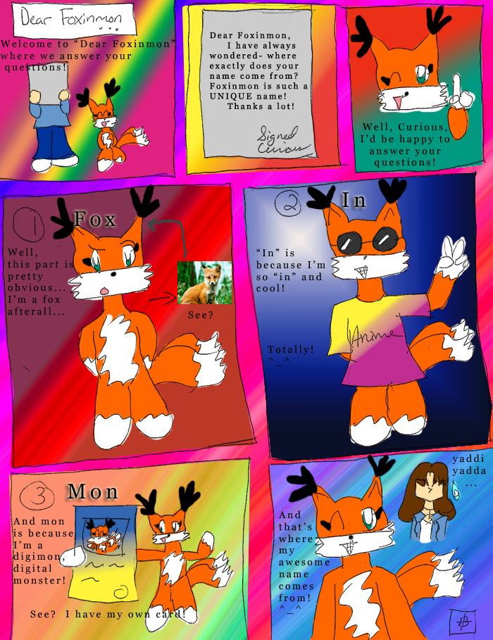 Hey everyone! Here are all my pictures of Foxinmon. They are in two categories: hand drawn and mouse drawn. Enjoy! ^___^