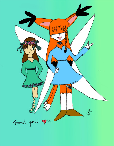 Becca and Foxinmon in spring ware-colored in Photoshop